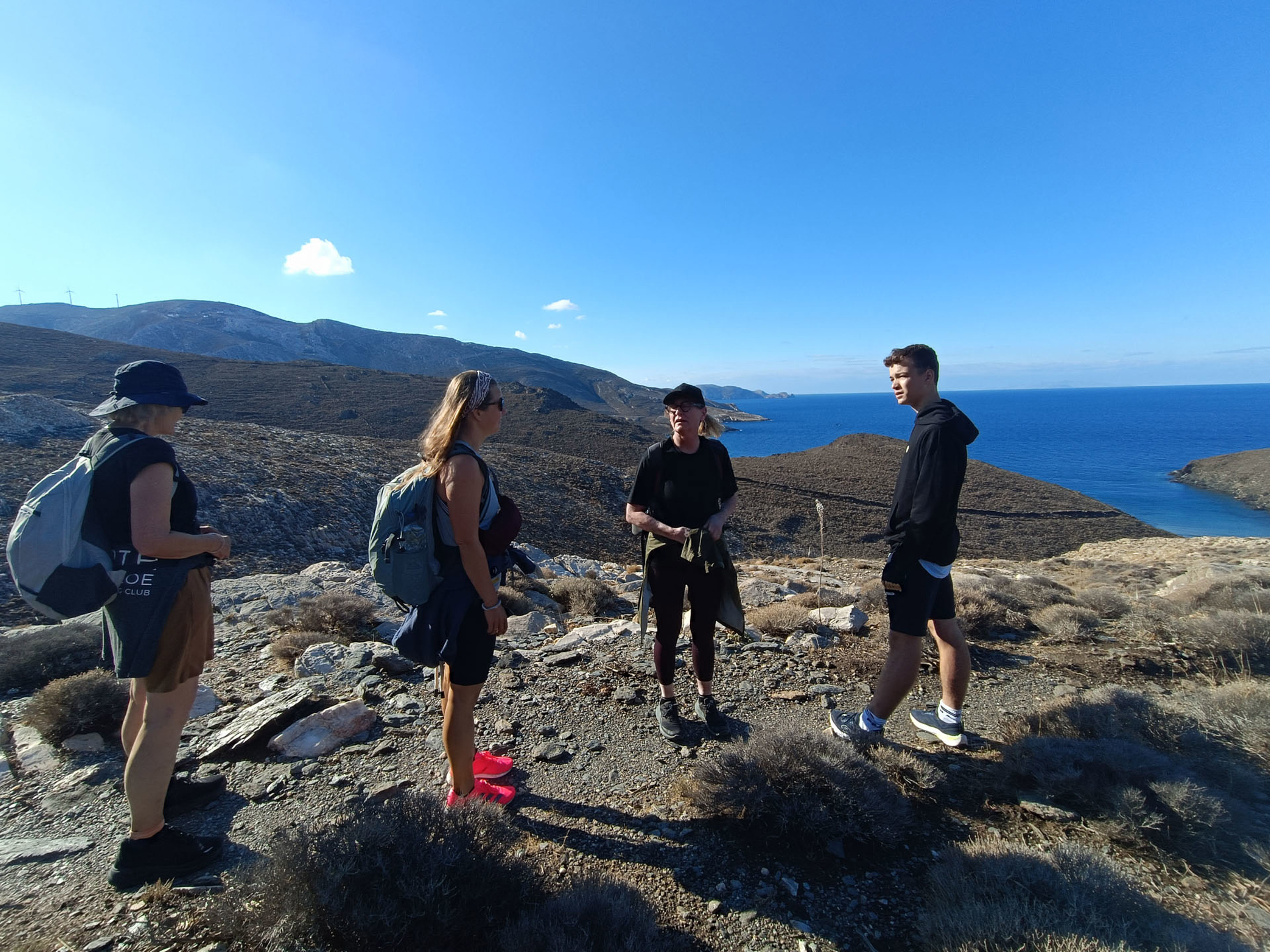 Πεζοπορούμε σε παλιά χαρακτηριστικά Κυκλαδίτικα μονοπάτια, σημείο αναφοράς μιας άλλης εποχής. Περνάμε δίπλα από εγκαταλελειμμένο λατομείο μαρμάρου, με εμφανή σημάδια χρήσης.
