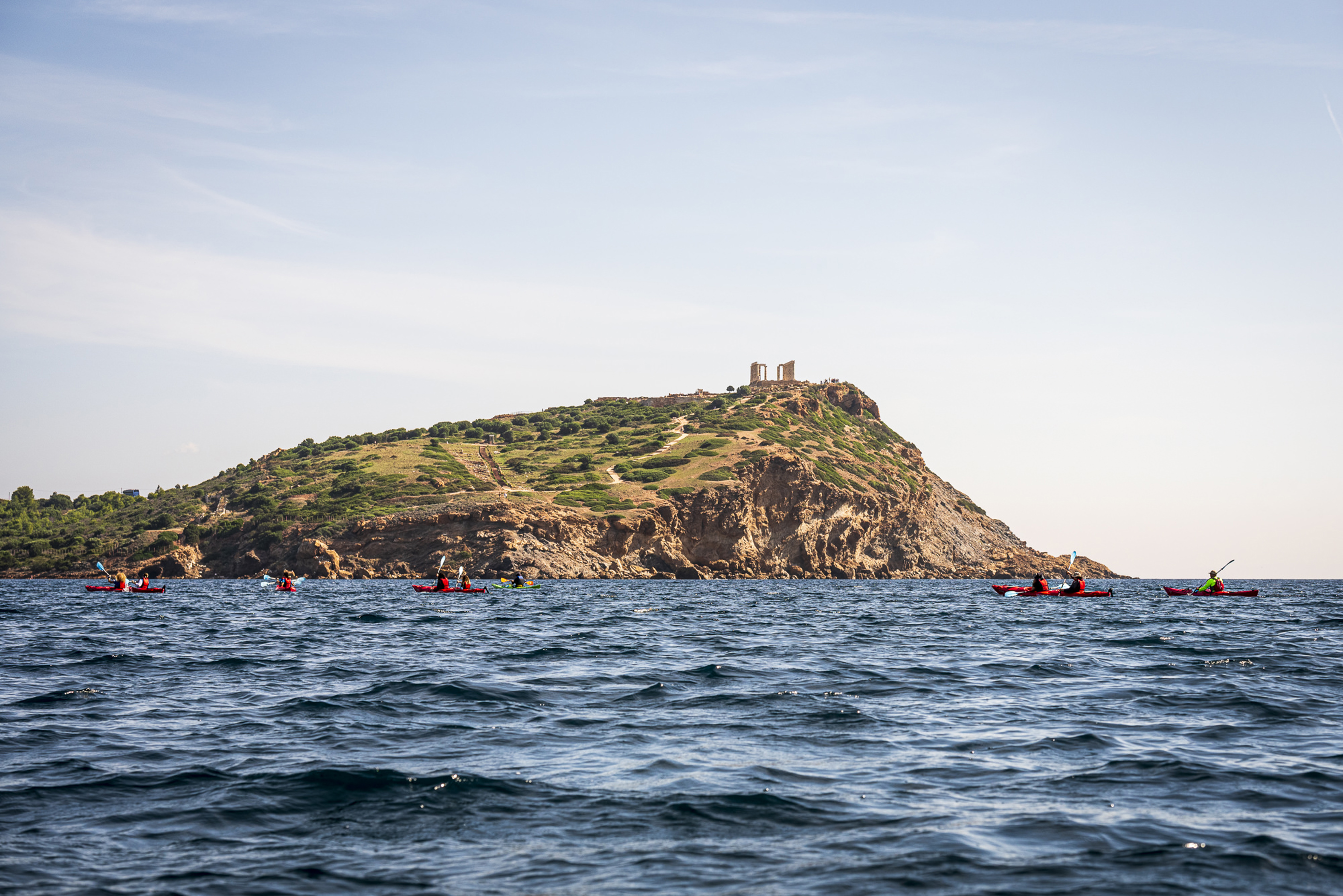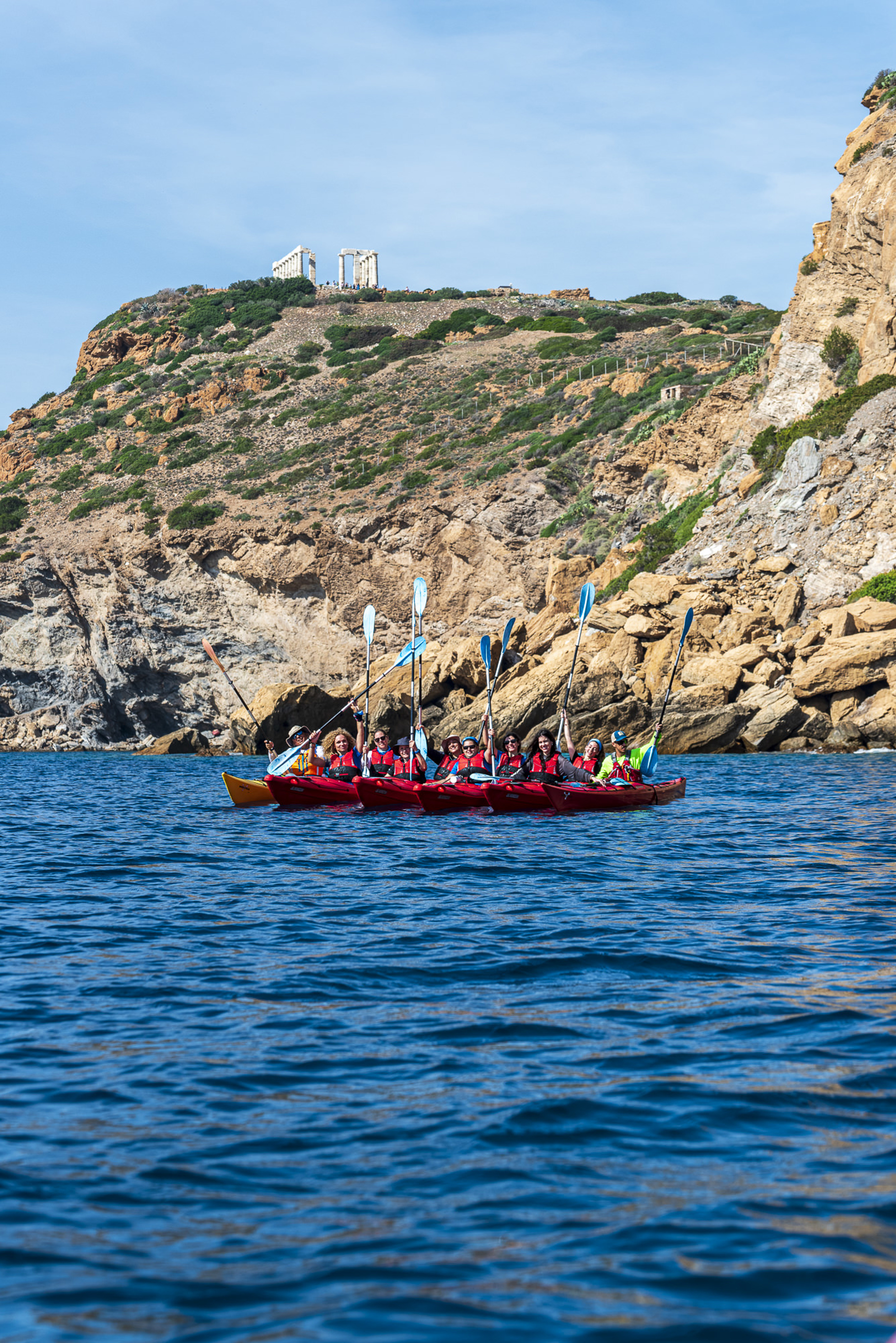 Κωπηλατούμε κατά μήκος της Αθηναϊκής Ριβιέρας απολαμβάνοντας τα καταγάλανα νερά, τις επιβλητικές πλαγιές και τις κρυμμένες σπηλιές. Η πρώτη μας στάση είναι η βραχονησίδα Αρχή ή μια από τις κρυφές παραλίες του Σουνίου, για κολύμπι και ένα αναζωογονητικό σνακ. Γεμάτοι ενέργεια συνεχίζουμε προς το Ναό του Ποσειδώνα. Ο εμβληματικός Ναός του Ποσειδώνα μας αποκαλύπτεται από μια οπτική γωνία που μόνο λίγοι μπορούν να απολαύσουν.