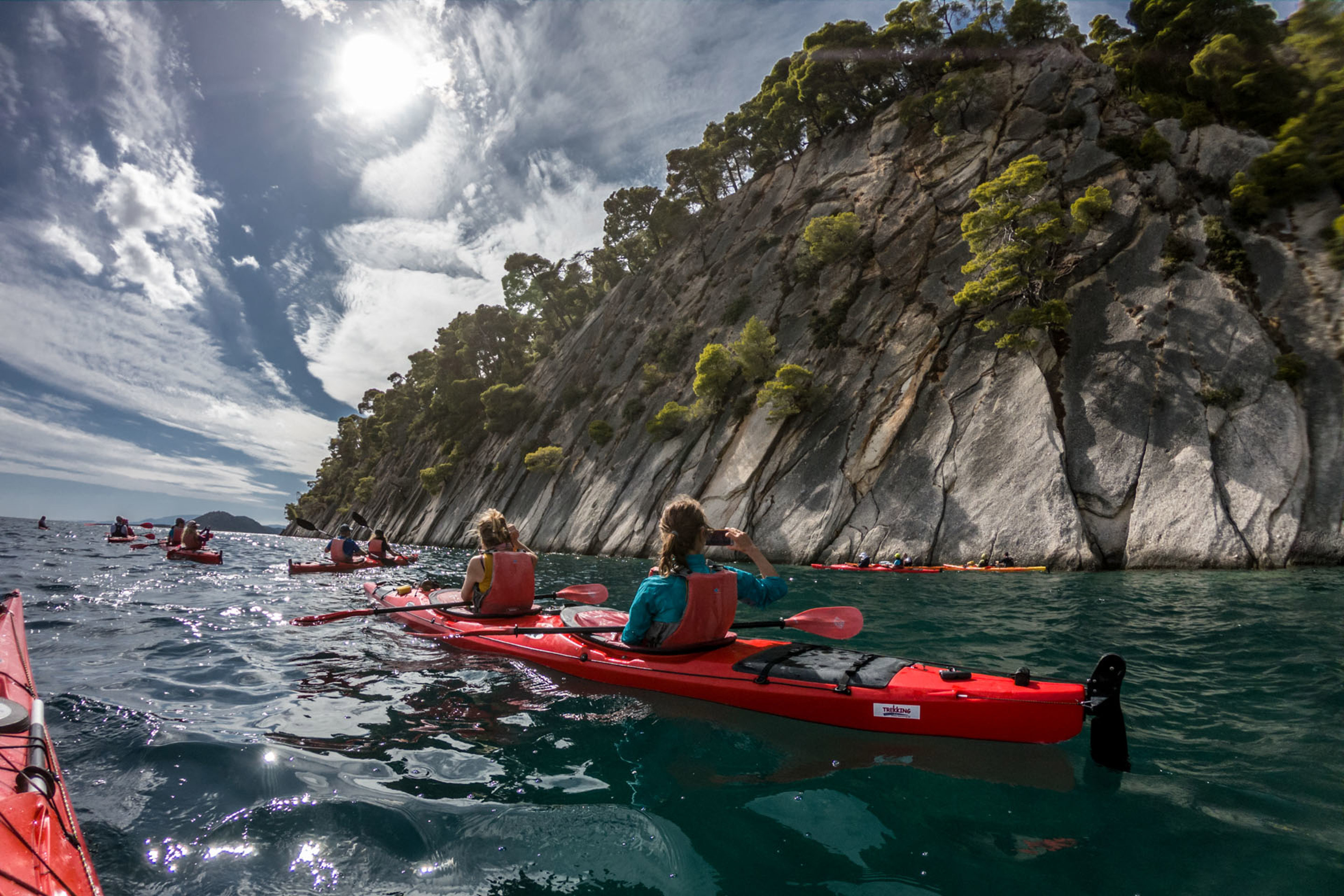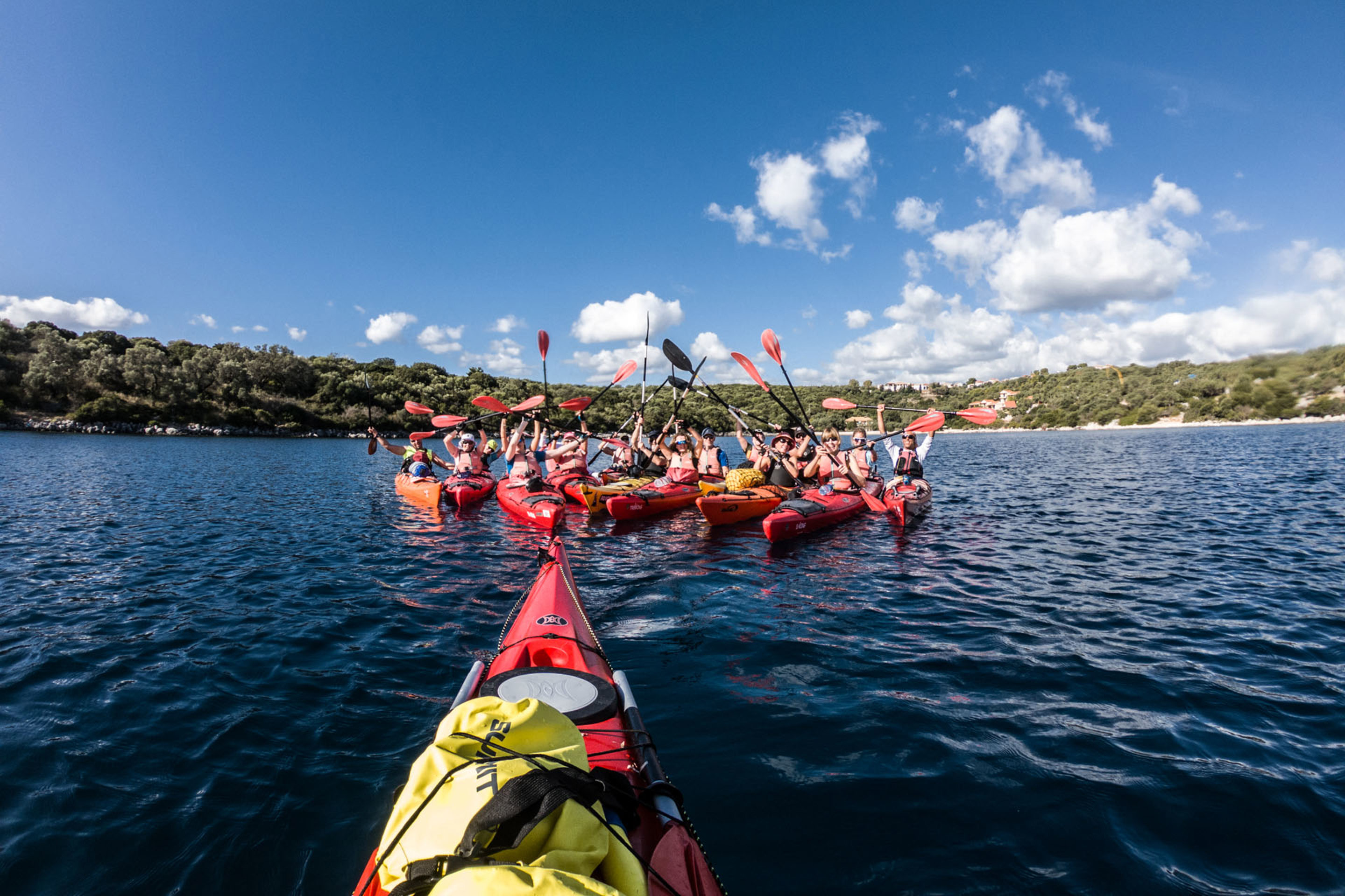 Η τριήμερη περιπέτειά μας ξεκινά από το Νυδρί. Αφού μπούμε στα 2θεσια θαλάσσια καγιάκ, κατευθυνόμαστε προς το εντυπωσιακό εσωτερικό αρχιπέλαγος της Λευκάδας. Πλέουμε ανάμεσα στα γνωστά ιδιωτικά Πριγκιποννήσια, περνώντας από την Μαδουρή, αντικρίζοντας το αρχοντικό του Αριστοτέλη Βαλαωρίτη και συνεχίζουμε στον θρυλικό Σκορπιό. Παράλληλα, κάνουμε μια σύντομη στάση στην ομώνυμη παράλια της Jackie Kennedy Onassi για φωτογραφίες και χαλάρωση.