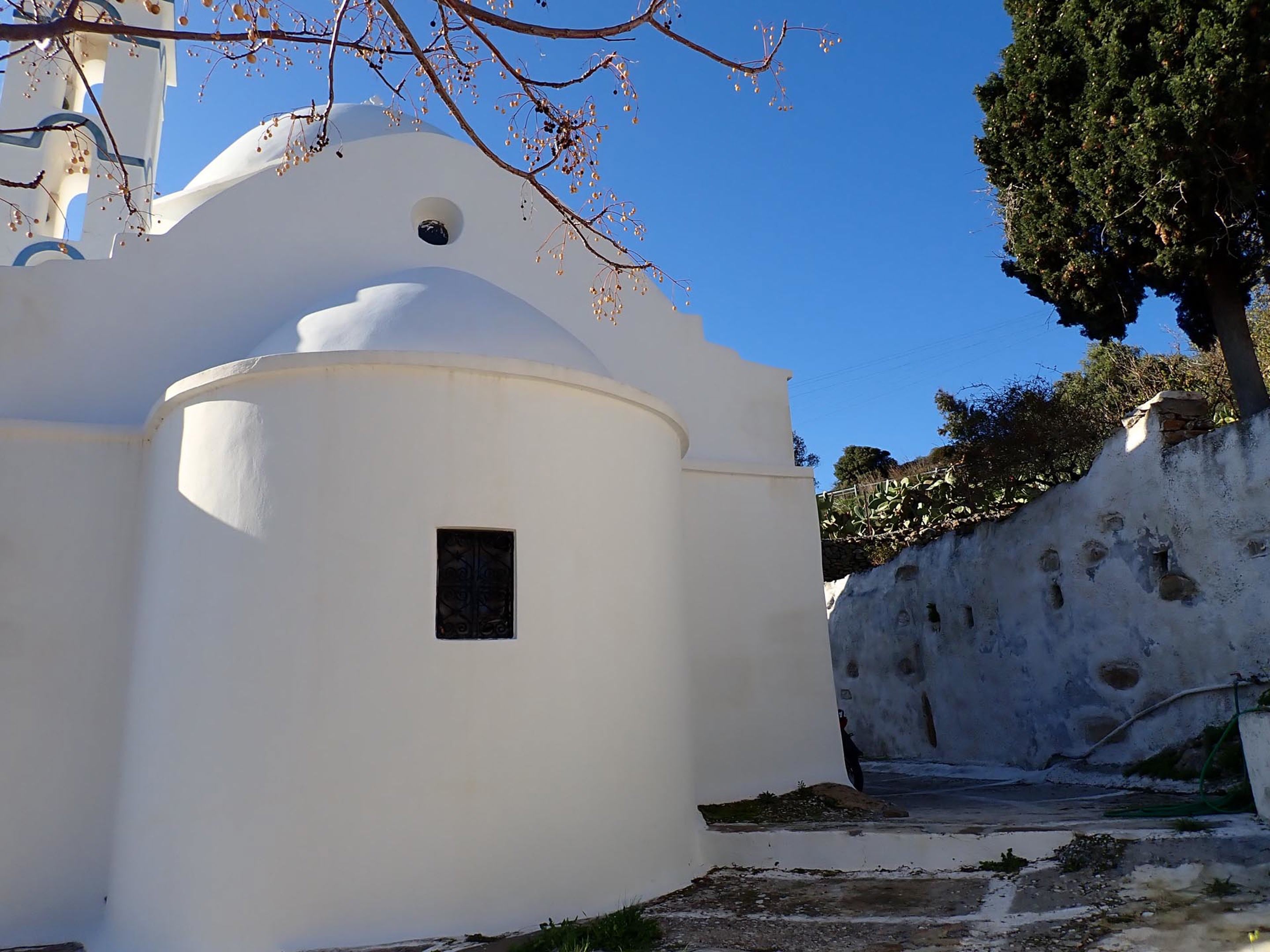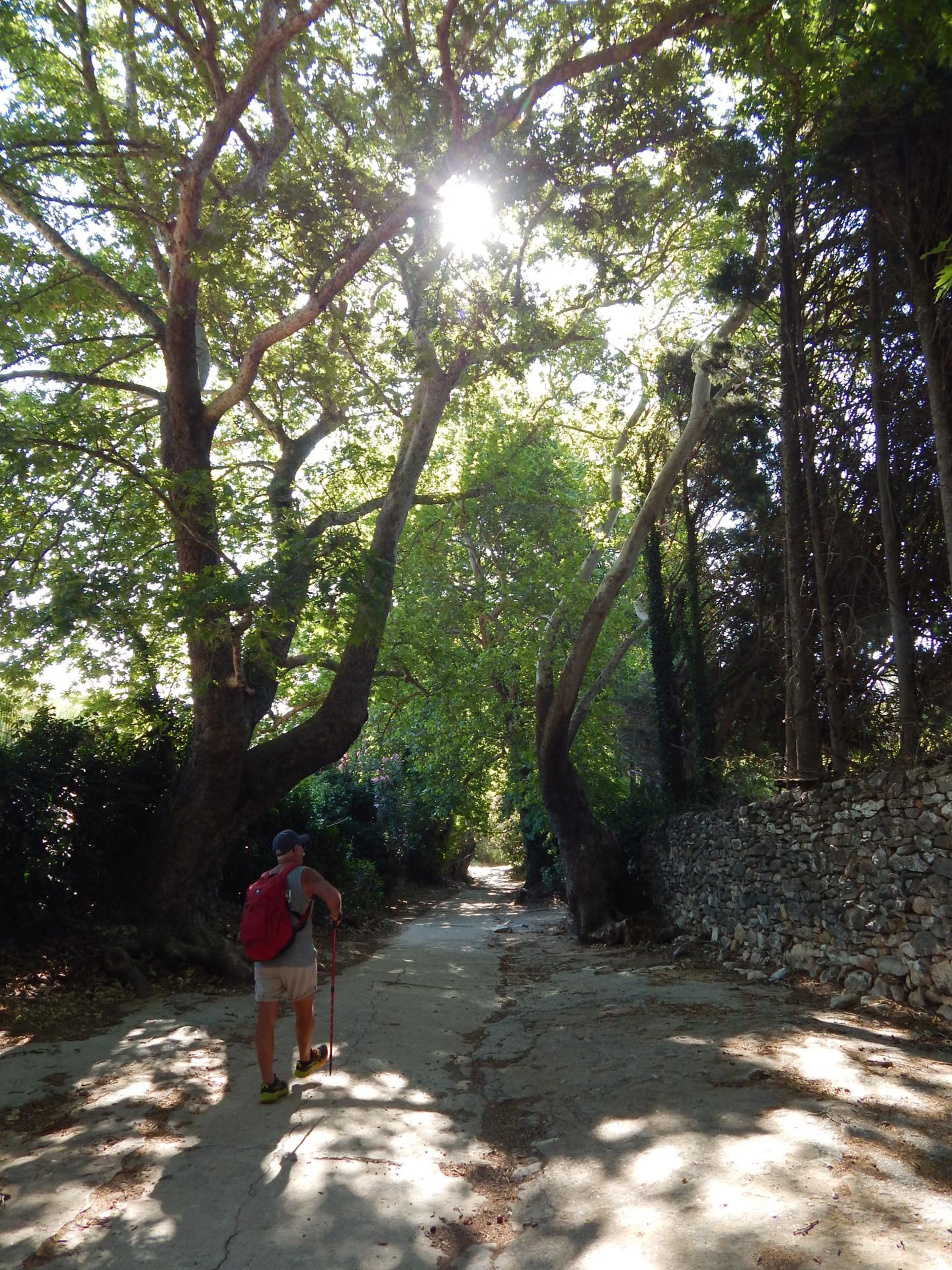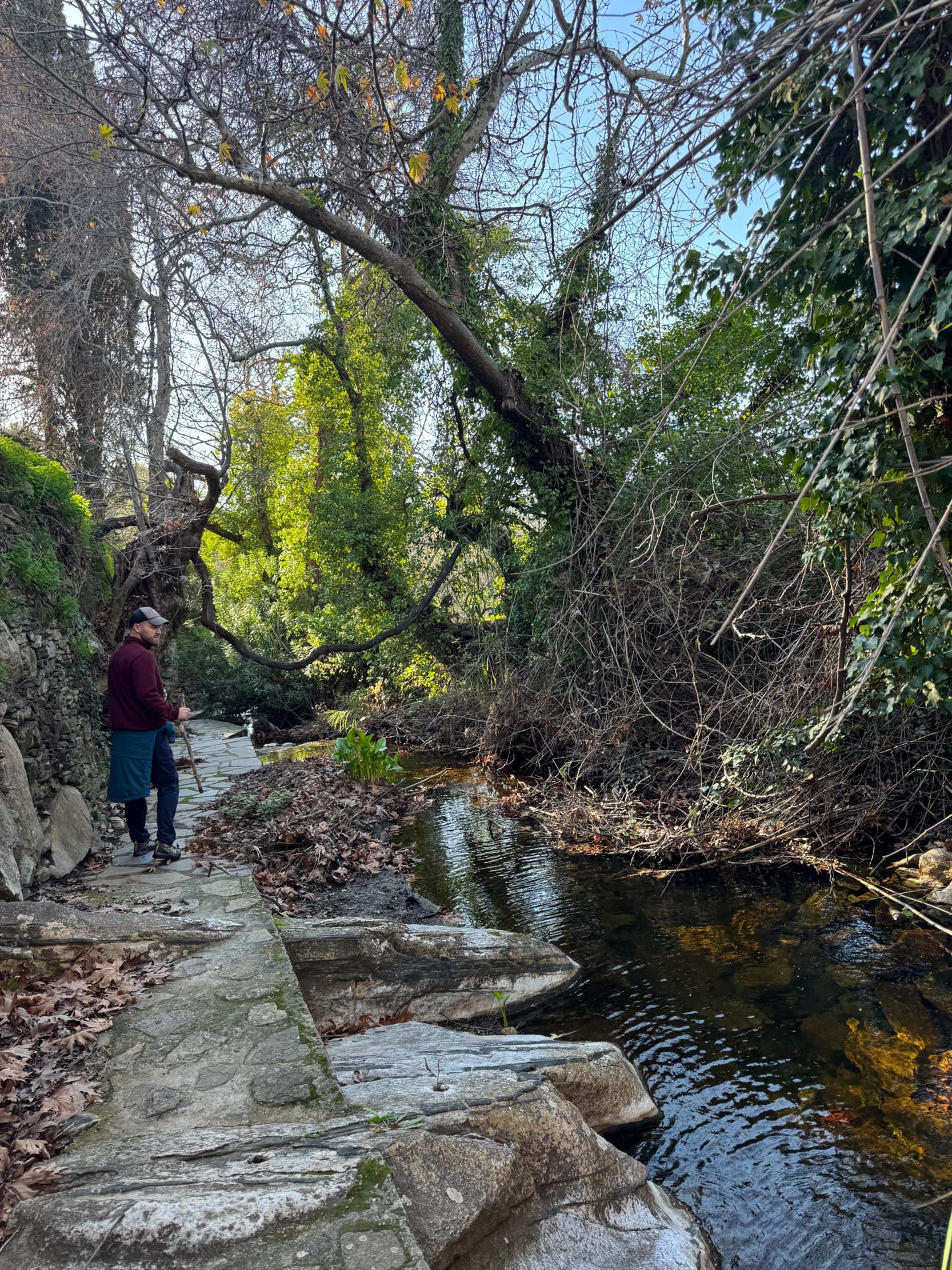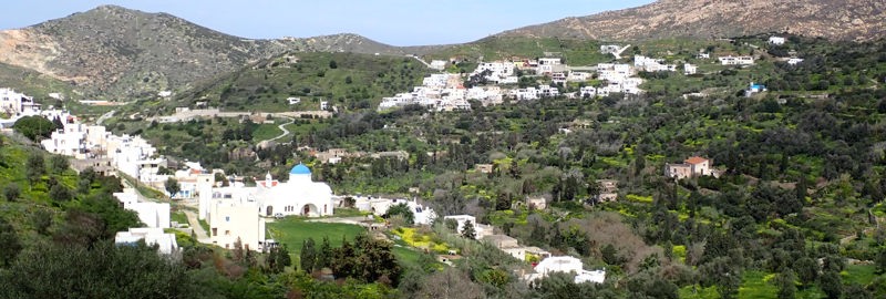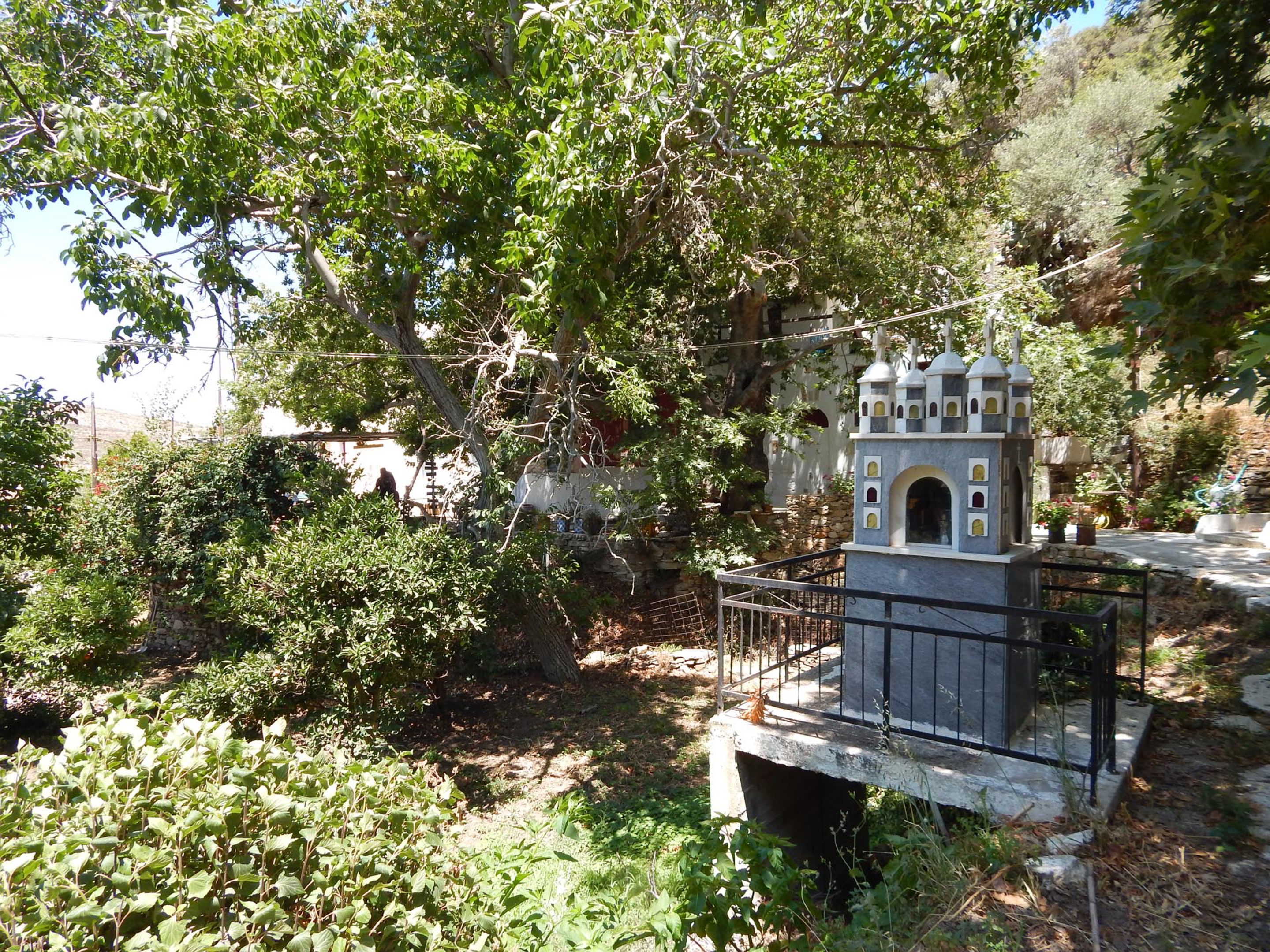 As the path descends, it brings you into the heart of the Potamia Valley, a green, water-rich oasis made up of Ano, Mesi, and Kato Potamia. Walking alongside a quiet river, you'll encounter remnants of old stone watermills and small lakes surrounded by lush vegetation, highlighting the island's most fertile landscapes.
