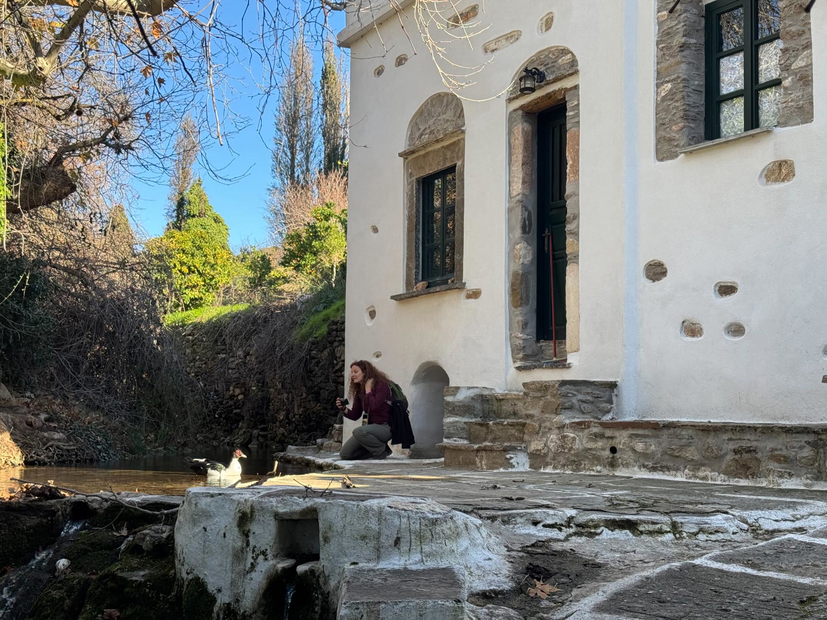 Along the way, we come across the Kokkos Tower, a 17th-century Venetian tower house that stands quietly amid orchards and flowing waters.