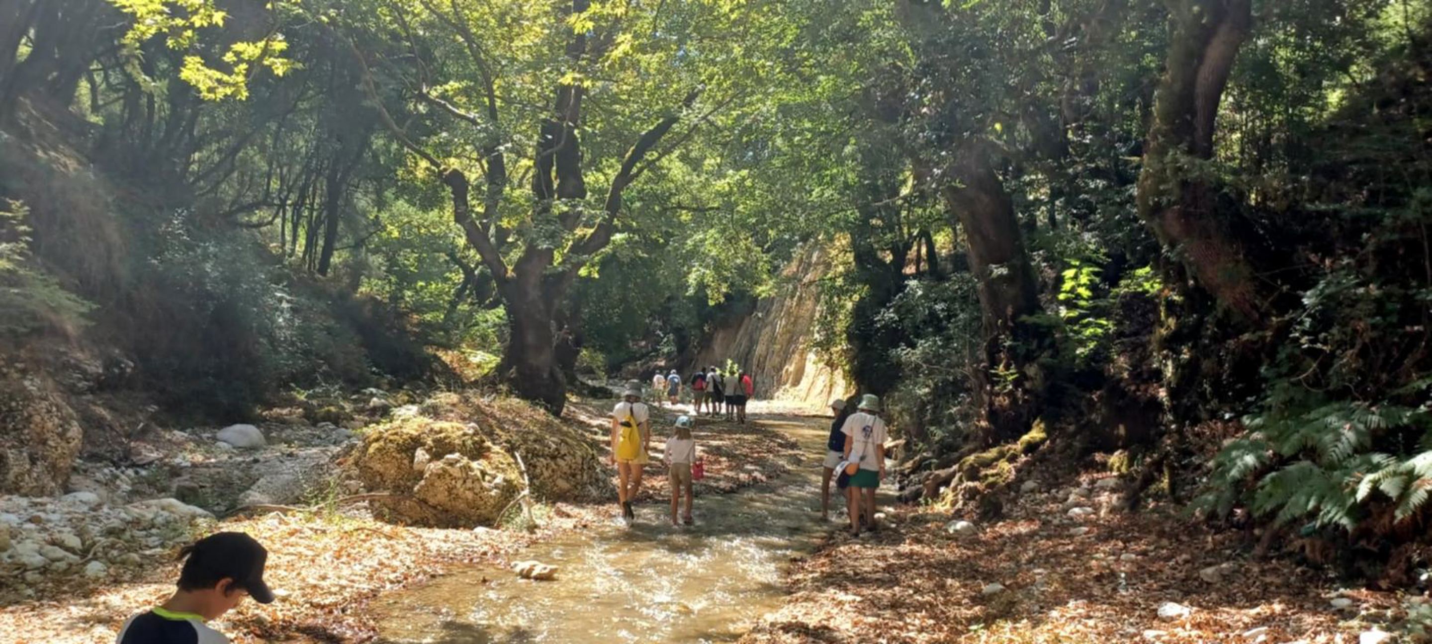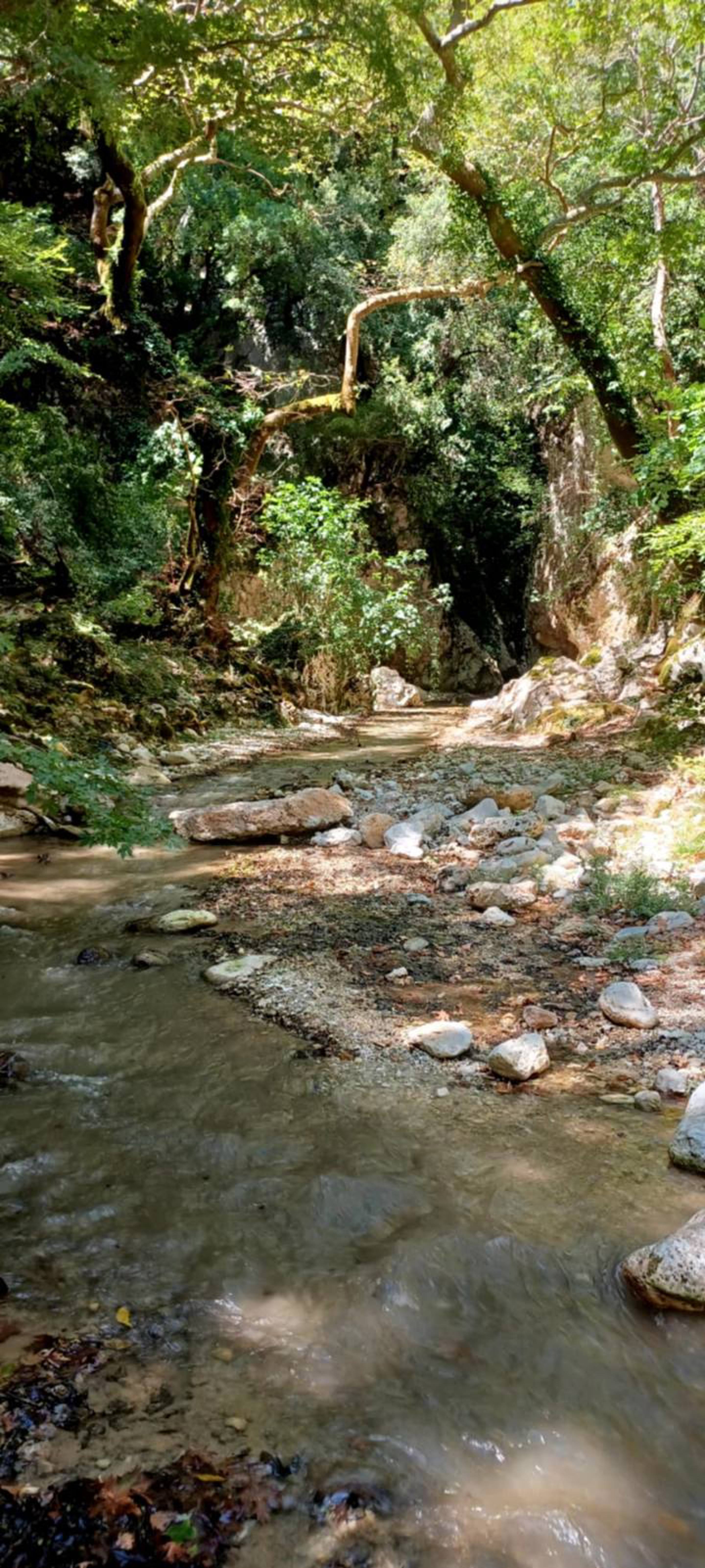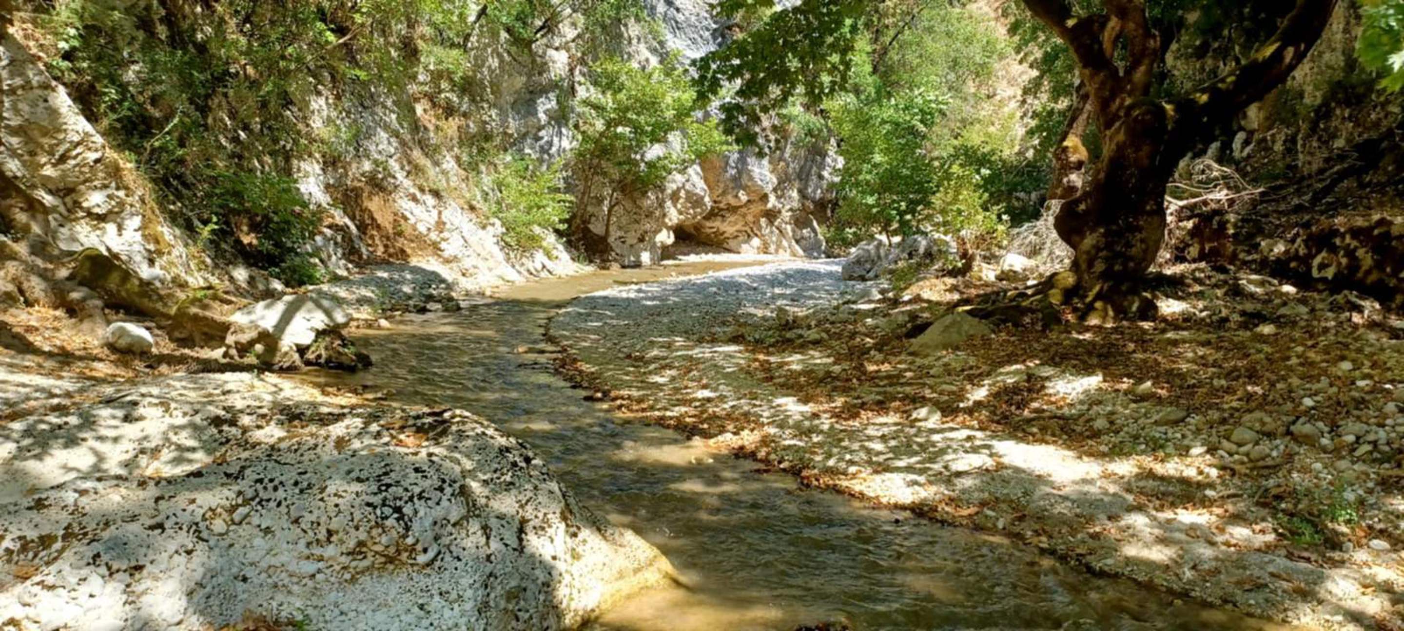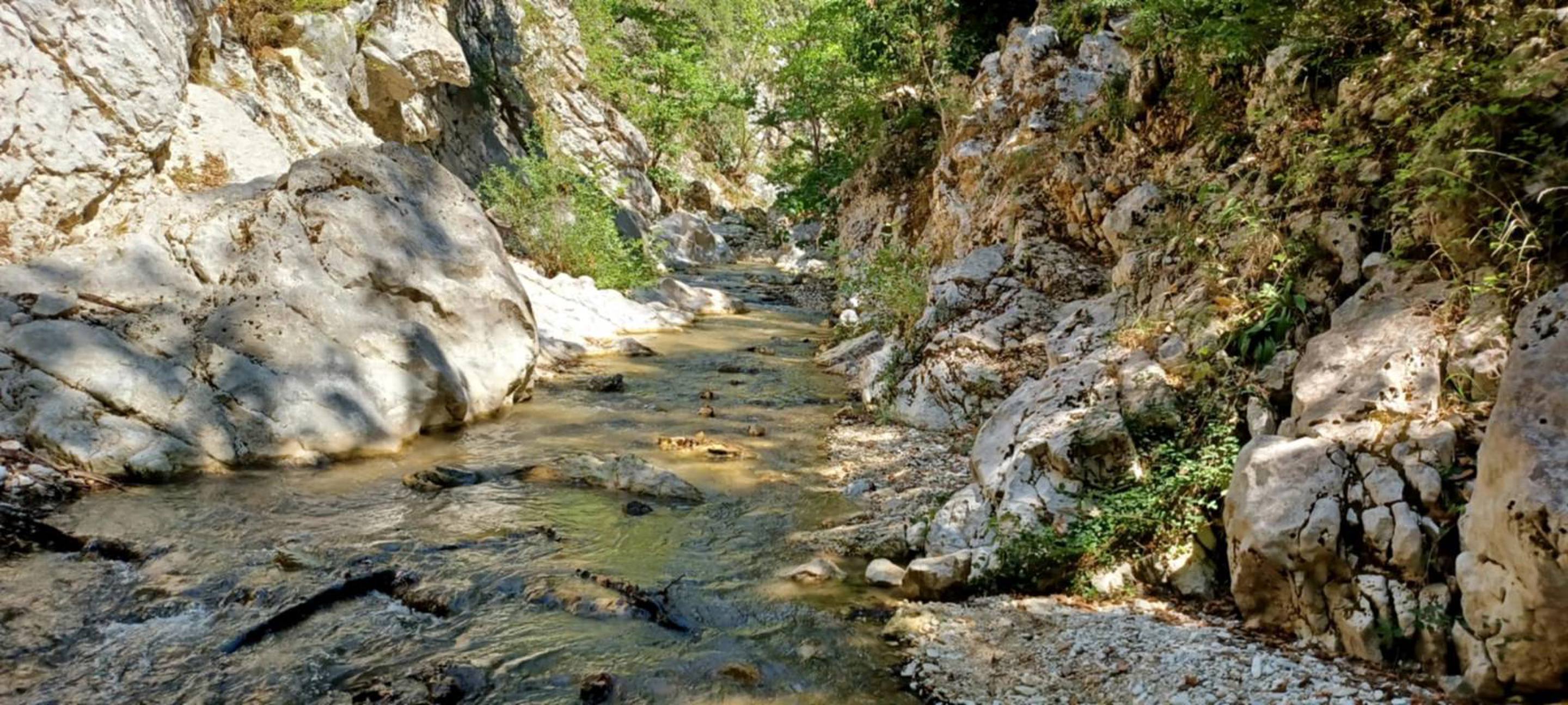 The route is gently downhill, leading us through the Tsagkariotiko stream gorge to the Dala mill and eventually into the impressive Acheron Gorge. In some narrow sections, the experience becomes more immersive, with river crossings and short swimming passages.
