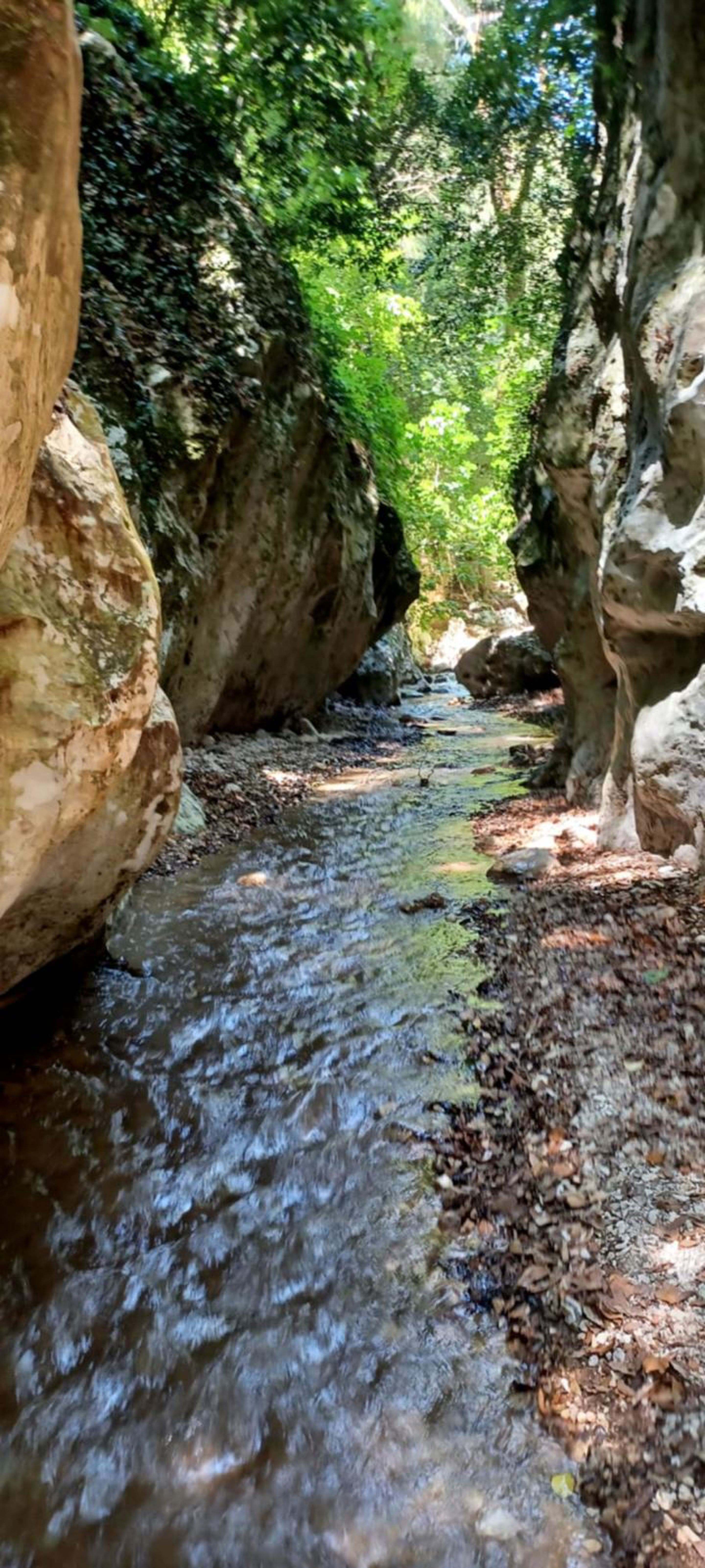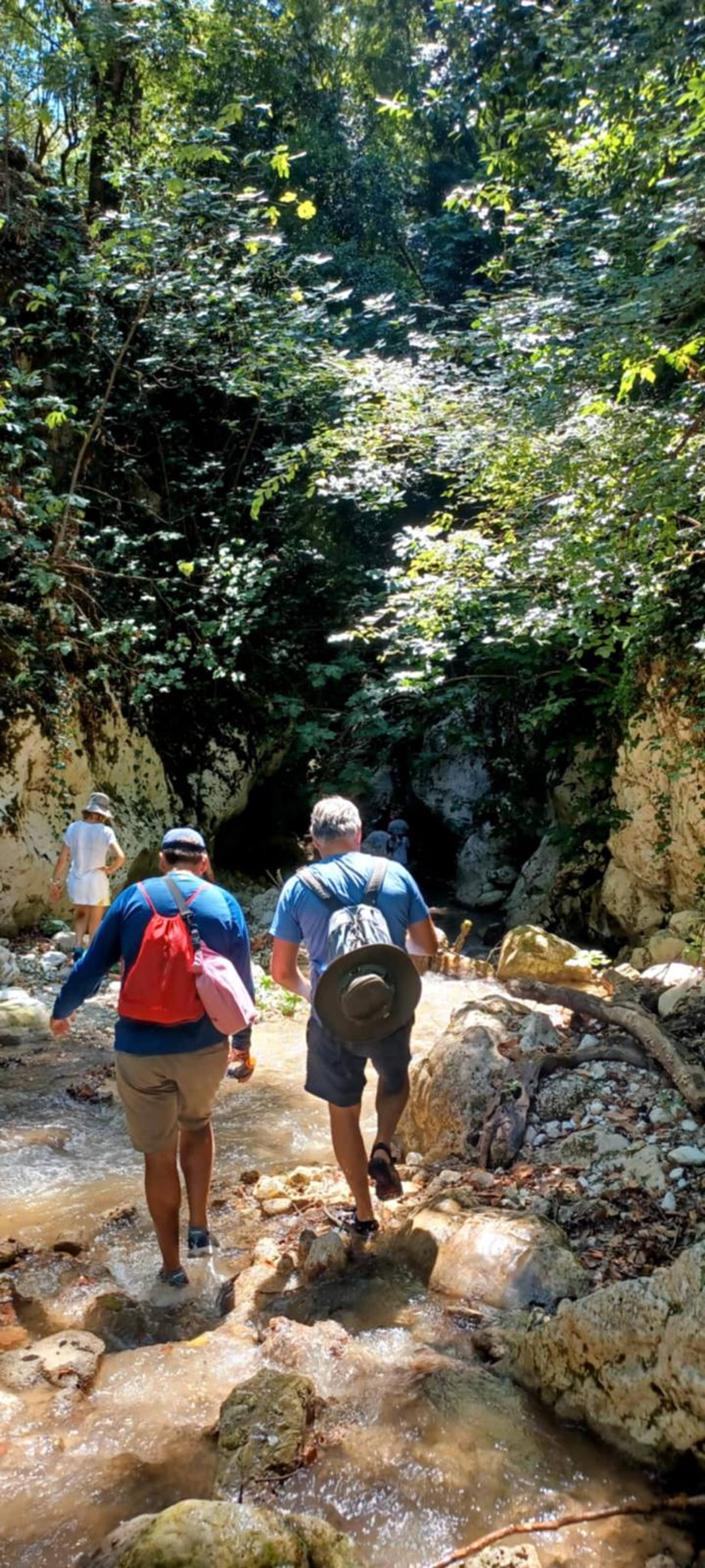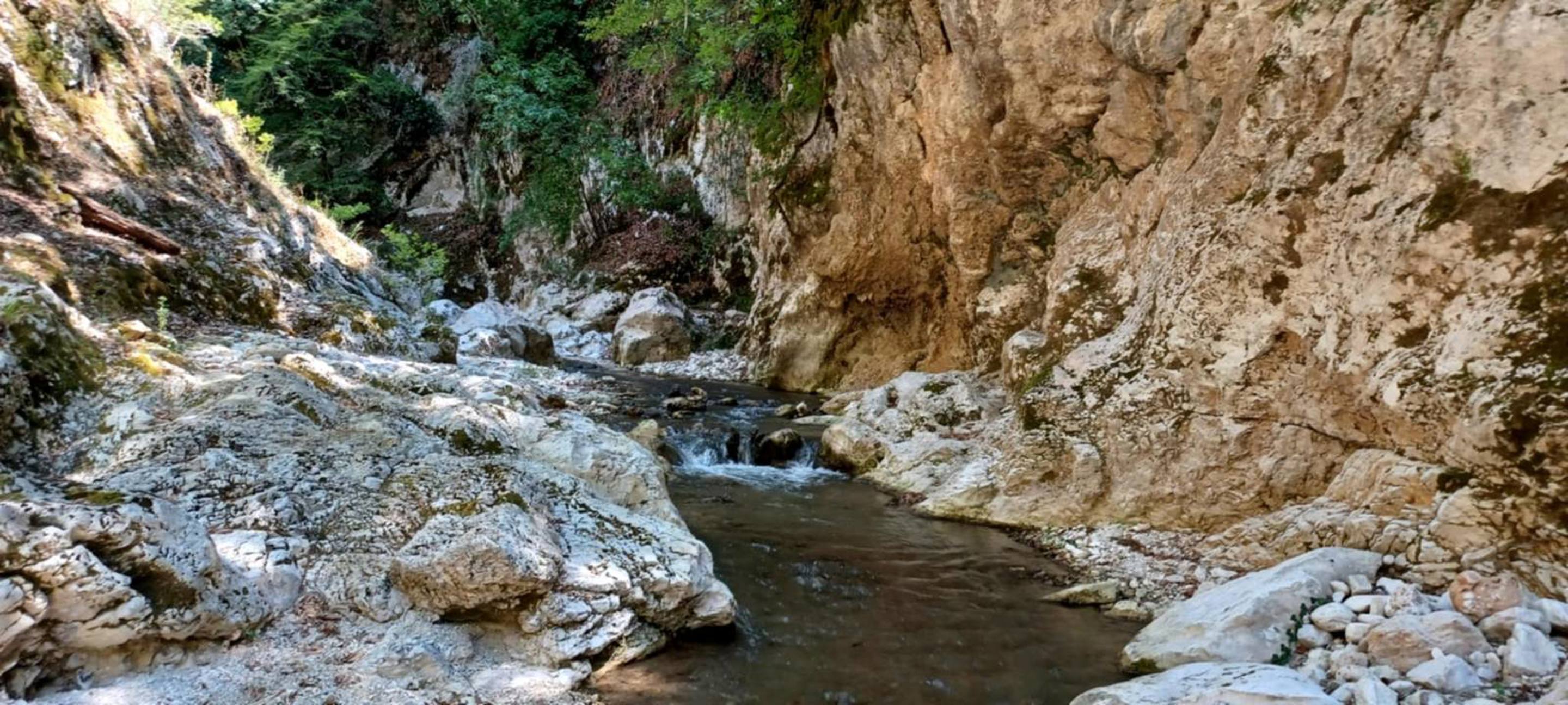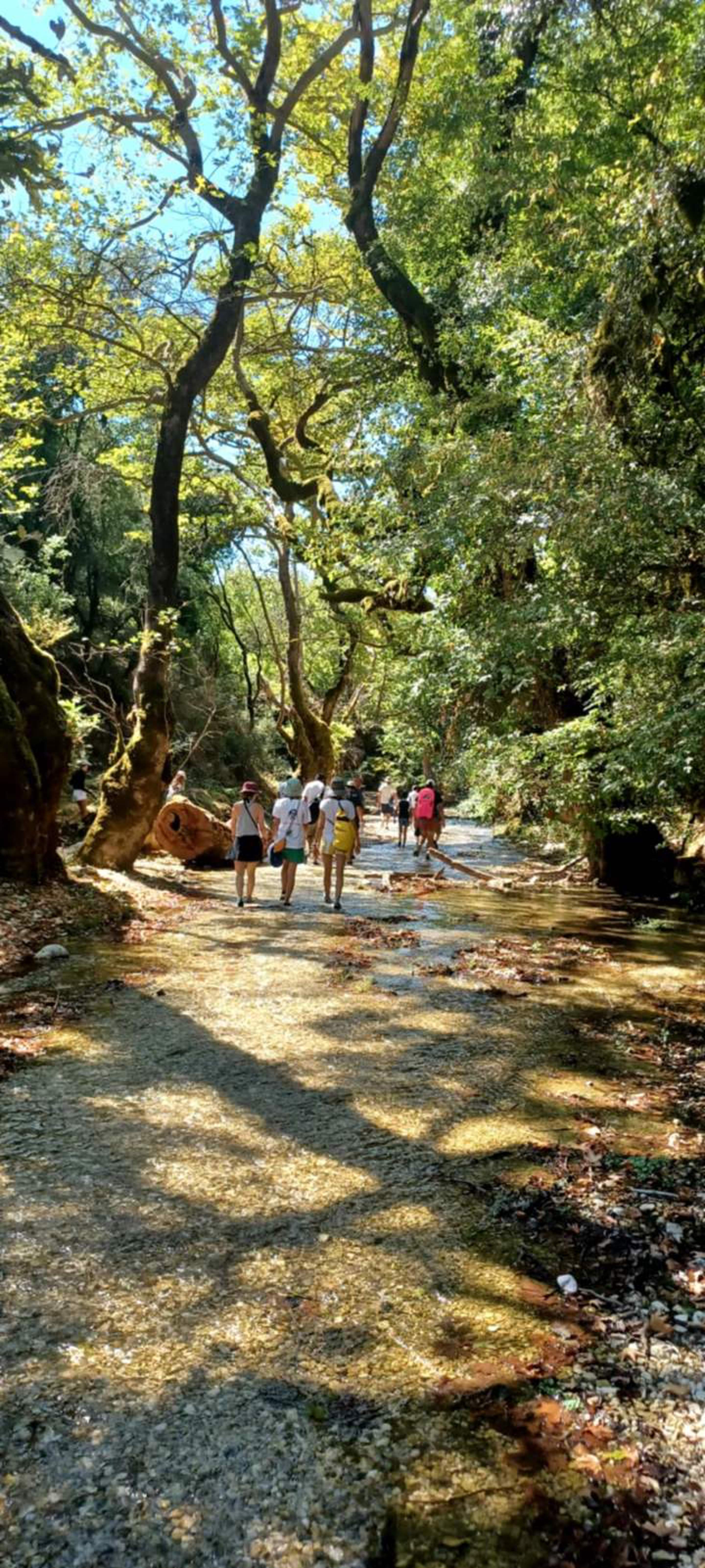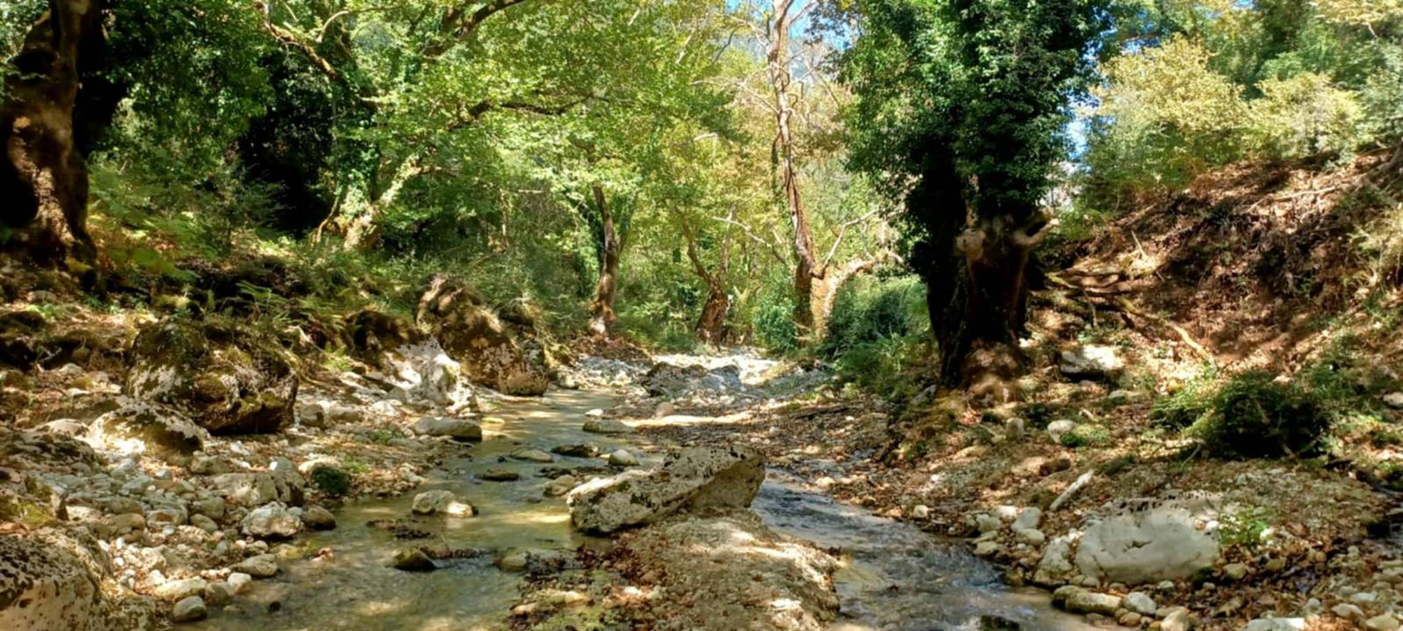 The route is gently downhill, leading us through the Tsagkariotiko stream gorge to the Dala mill and eventually into the impressive Acheron Gorge. In some narrow sections, the experience becomes more immersive, with river crossings and short swimming passages.