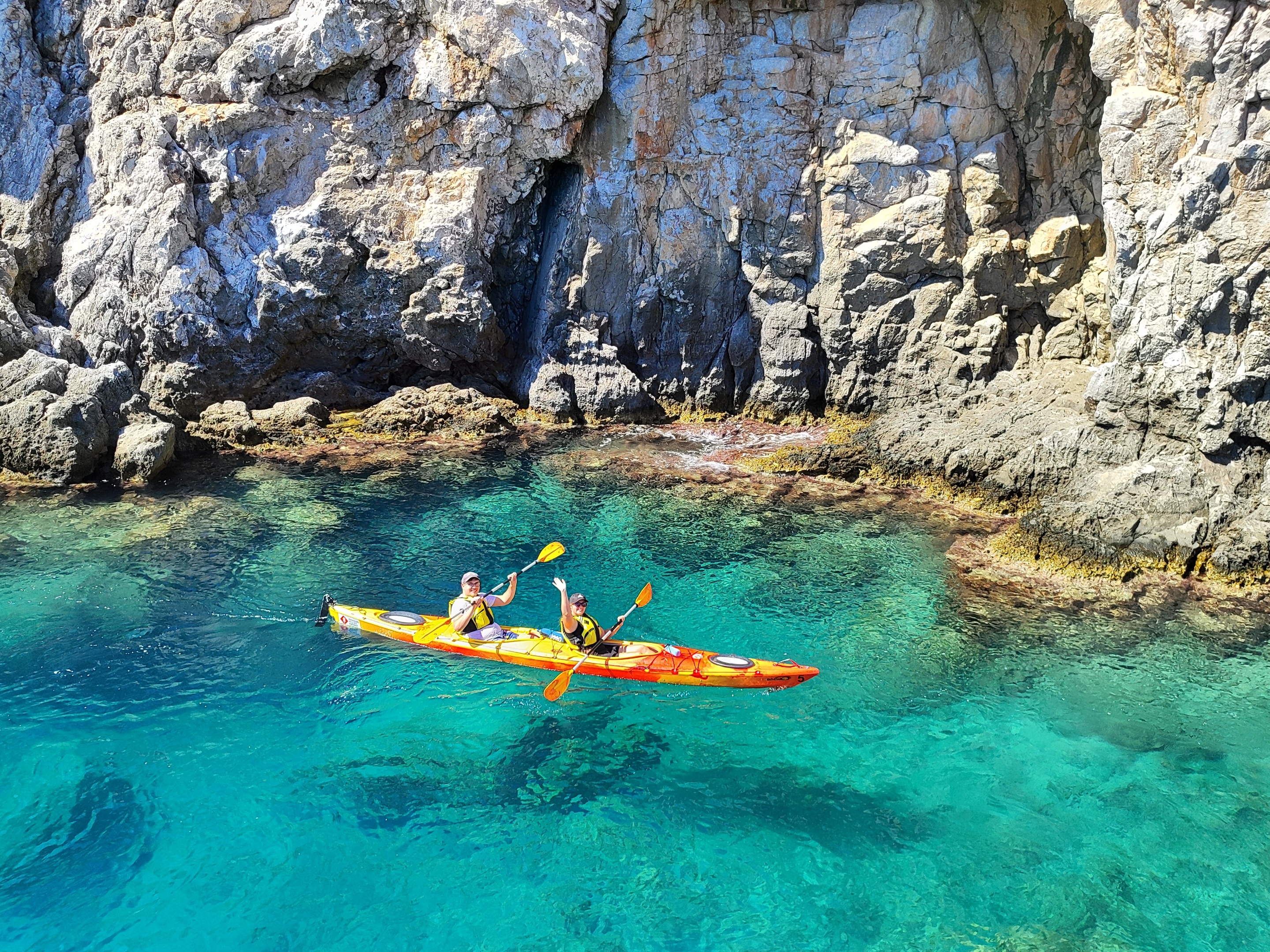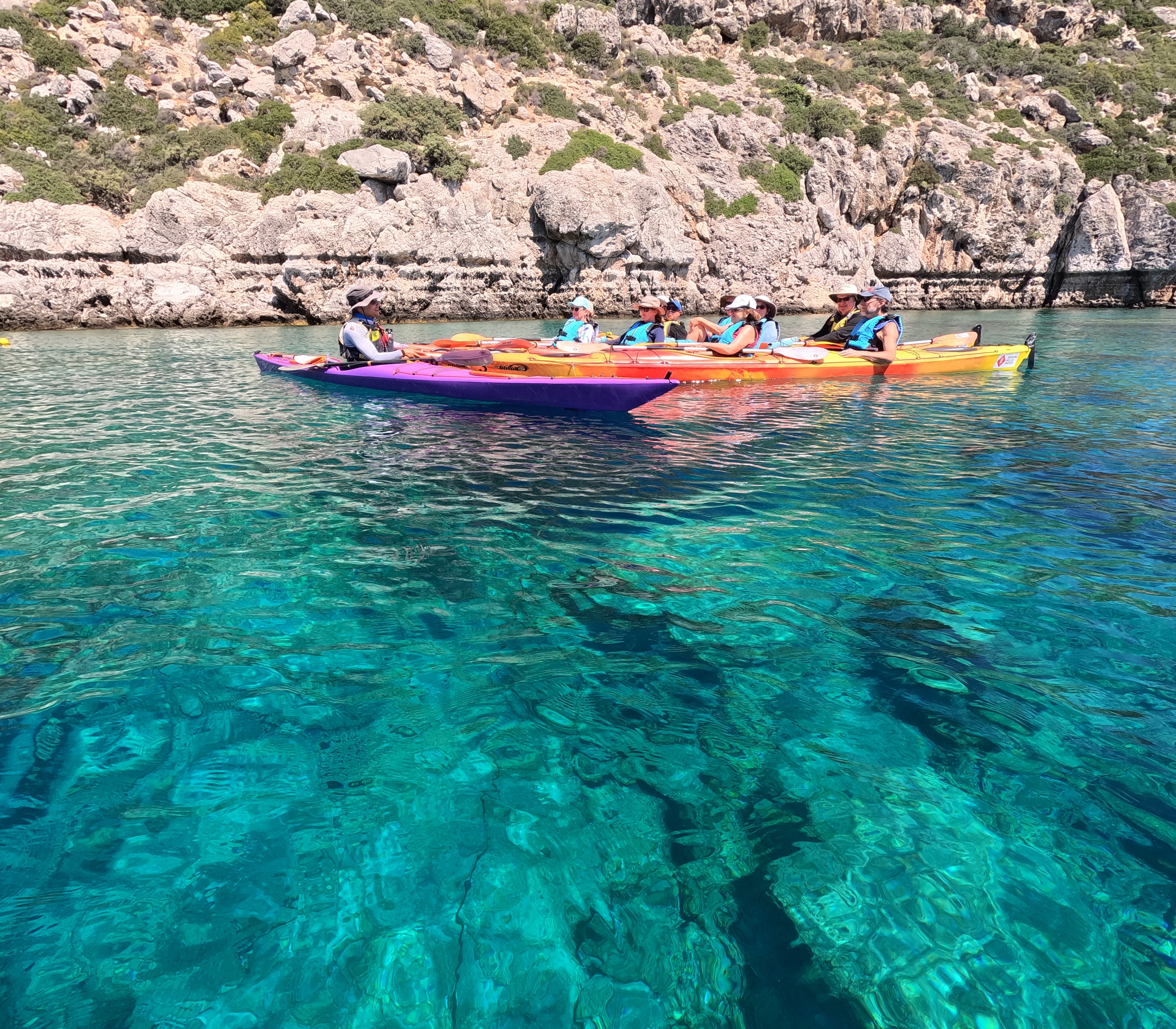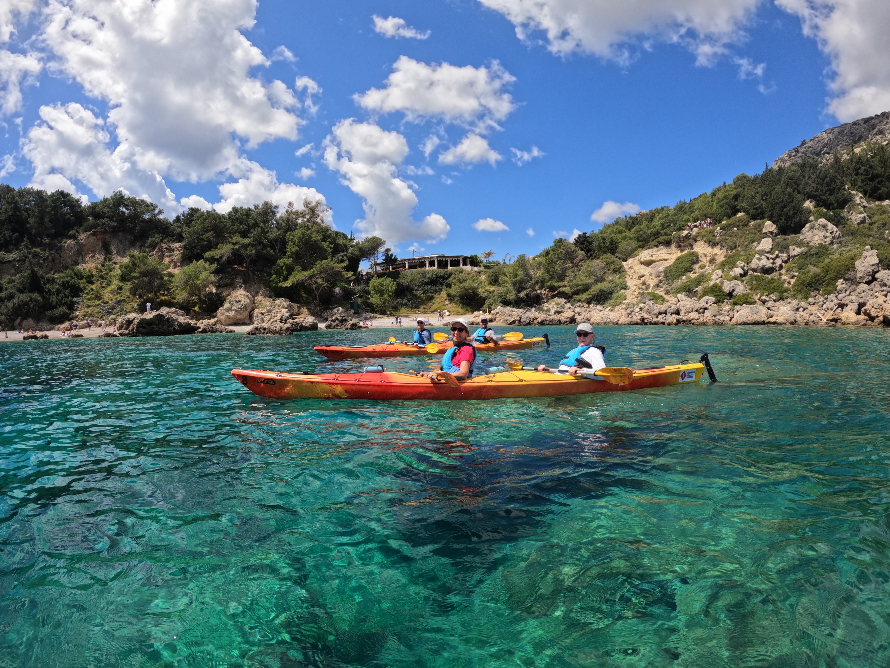 Embark on a half-day sea kayaking journey along Rhodes’ stunning east coast, where every paddle brings you closer to nature and hidden coastal gems. Starting at Kathara Beach in Faliraki, our certified sea kayaking leaders will provide a thorough introduction, show you how to handle your kayak safely, and equip you with everything you need , so you can fully enjoy the day.
